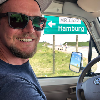 Je näher wir der Wild Coast kommen, desto mehr Kühe und Ziegen liegen auf der Straße und desto größer werden die Schlaglöcher, teilweise 1/2 m tief. Kurz vor unserem Ziel steht eine Flussüberquerung mittels Fähre, ein Ponton mit Außenborder, an. Nachdem die Passagiere, ein paar Pferde und ihre Reiter, von Bord gegangen sind, dürfen wir auf die Fähre fahren. Der Kapitän sieht aus wie aus einem 90er Jahre Hip Hop Musikvideo entsprungen. Trocken gelangen wir auf die andere Seite.