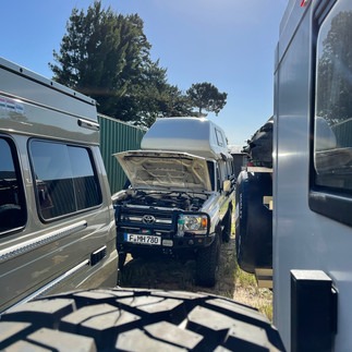 Die 90kg Gepäck wollen aber noch einsortiert werden, was einen halben Tag in Anspruch nimmt. Gott sei Dank haben wir in Deutschland noch die Heckbox installiert, in der Rücksäcke und Schuhe Platz finden.