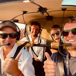 Am nächsten Tag kriegen wir mal wieder einen sehr wertvollen Tipp von einem belgischen Paar. Die beiden haben sich einen Helikopter Flug über das Okavango gegönnt und schwärmen nur so. Am selben Tag buchen wir den Flug inklusive Champagner Pause mitten im Okavango Delta für den nächsten Nachmittag. Der Helikopter ist winzig und hat keine Türen. Ich bin ein bisschen nervös. Unsere Piloten sind richtig nett. Den ersten Teil der Strecke bis das Delta beginnt, fliegen wir mit ordentlicher Geschwindigkeit, sodass der Wind uns um die Ohren pfeift. Über dem Delta werden wir langsamer und können die Aussicht genießen. Der absolute Wahnsinn. Wir sehen Zebras, Antilopen, Hippos und eine Elefantenherde, die sich nicht besonders freut, uns zu hören. Wir landen mitten im Nichts. Die Gläser und der Champus sind sogar gekühlt. Nachdem wir die Landschaft genossen und die Flasche geleert haben, geht es wieder zurück.